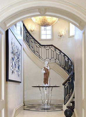 An entry with a sweeping staircase that takes the eye up, up, up, is pure delight. There’s no doubt that a stairway with dramatic iron railings has a wow factor that sets the tone for a home.