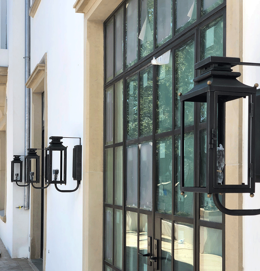 One of our most simplistic lanterns, the Simone custom lighting family gracefully frames a luminescent flame or bulb with unobstructed panes and clean lines. This lantern is well-suited for the most recent low-profile trend, as well as any modern/transitional property, with its minimalist design and understated elegance. It displays well and driveways, entryways and patios with a simple sophistication.