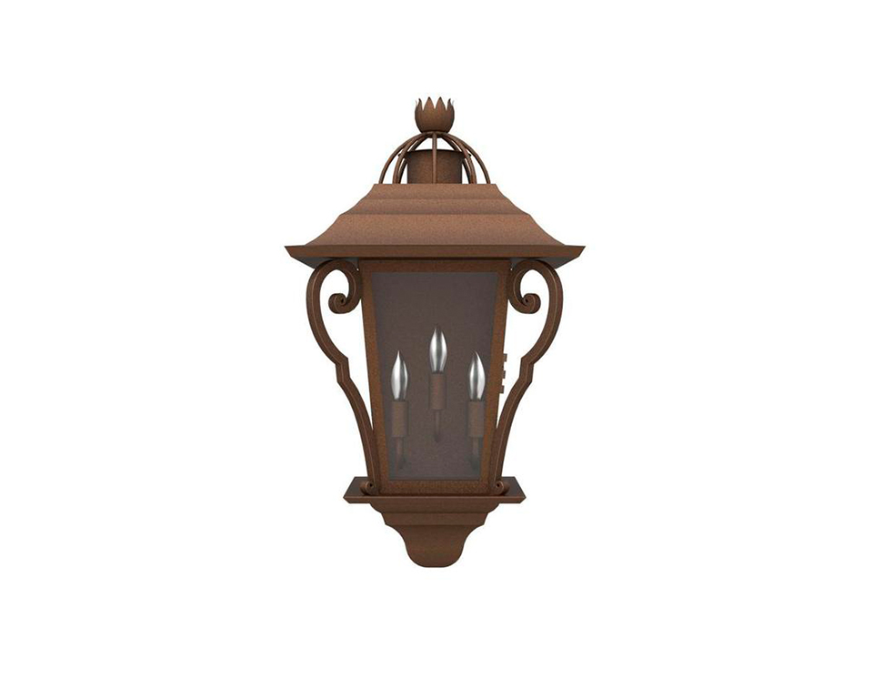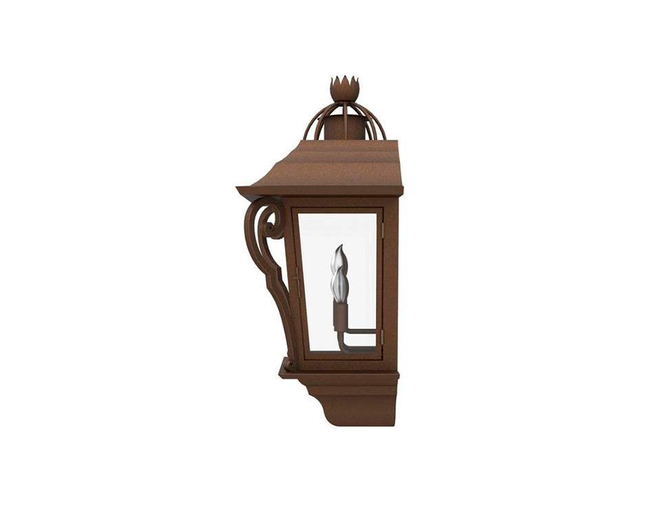 Simple sophistication meets classic composition with this Dutch Colonial lantern. The ornate design crowning the top is reminiscent of a gambrel roof, while playful scrollwork on the sides of the lamp and bottom of the mount invites an old-world and timeless influence. Ideal for lighting driveways, entryways, hallways, stairways, patios and other areas, the Amsterdam custom lighting family exudes an enduring elegance wherever it’s displayed.