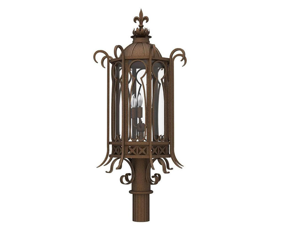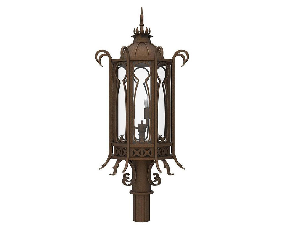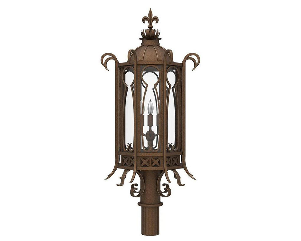 An original Solara design, this elaborate, Italian-style iron lantern takes its name from a province in Tuscany. The domed, cathedral-like cap is topped with a fleur-de-lis, while the body of the lamp features a keyhole design on eight sides. And the entire composition is framed modestly by elegant iron scroll. The Arezzo custom lighting family offers a dramatic way to light driveways, entryways, hallways, stairways, patios and other areas.