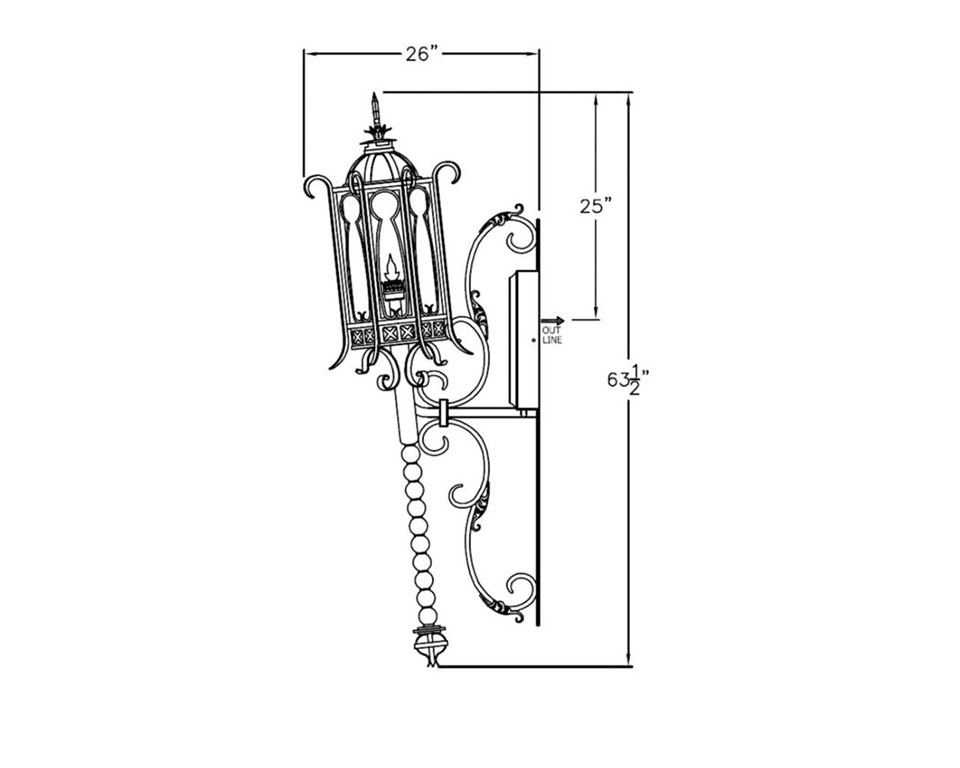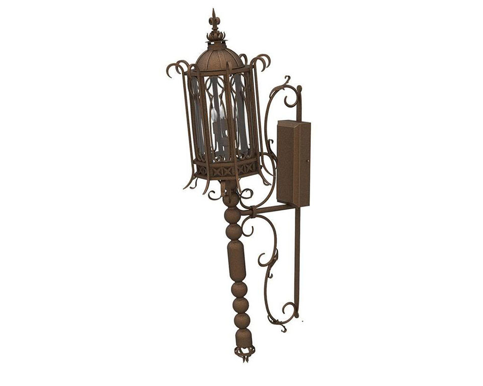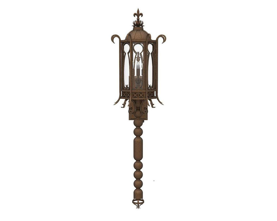 An original Solara design, this elaborate, Italian-style iron lantern takes its name from a province in Tuscany. The domed, cathedral-like cap is topped with a fleur-de-lis, while the body of the lamp features a keyhole design on eight sides. And the base extends confidently with connecting geometric spheres in varying sizes. The Arezzo custom lighting family offers a dramatic way to light driveways, entryways, hallways, stairways, patios and other areas.