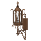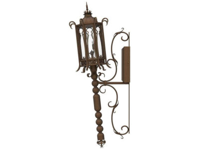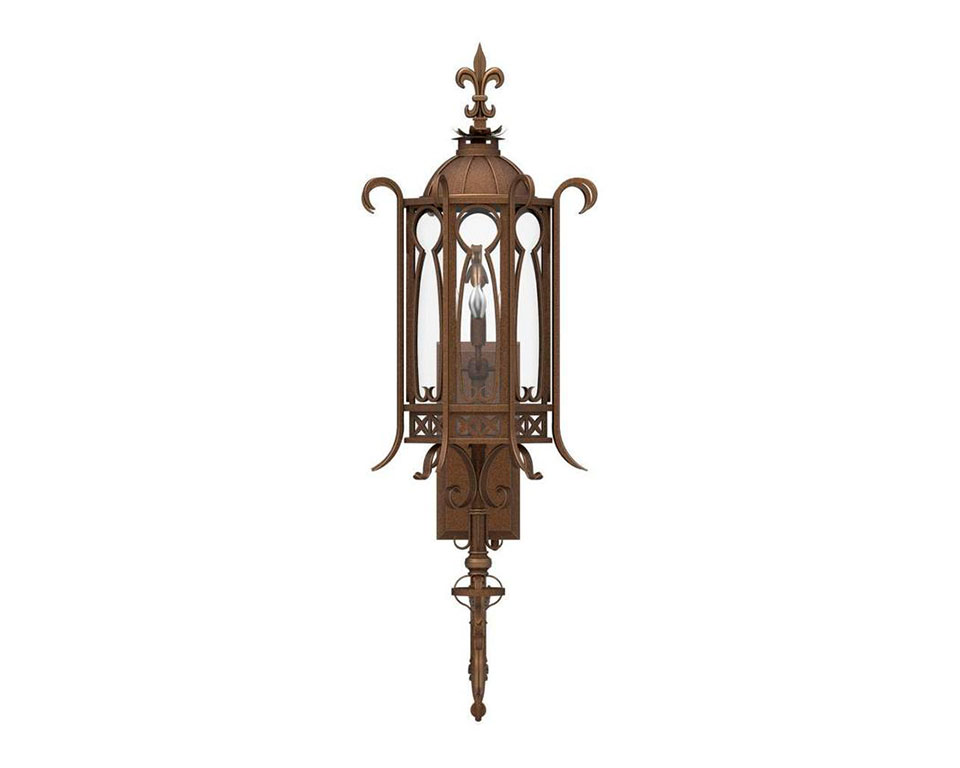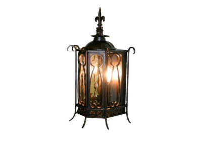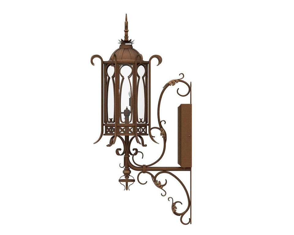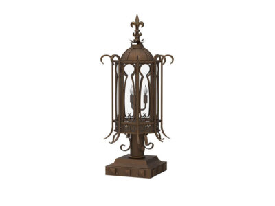 An original Solara design, this elaborate Italian-style iron lantern takes its name from a province in Tuscany. The domed, cathedral-like cap is topped with a fleur-de-lis, while the body of the lamp features a keyhole design on eight sides. The bottom of the base is finished with acanthus leaves and the entire composition is framed elegantly by elaborate iron scroll. The Arezzo custom lighting family offers a dramatic way to light driveways, entryways, hallways, stairways, patios and other areas.