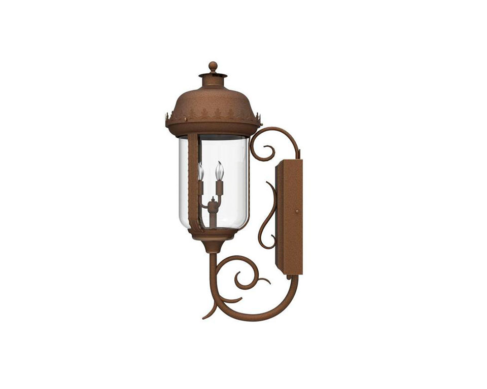 Simple in its sophistication and designed to complement a European-style home, the Bellagio lantern family offers a Venetian-style influence for a modestly elegant illumination. The design itself is reminiscent of Italian architecture with a Byzantine and Ottoman influence, in the form of a rounded lantern crowned with lancets and framed by decorative scroll. This custom lighting concept works well for a front entry, along a hallway, illuminating a patio or even in a bathroom or dining room.