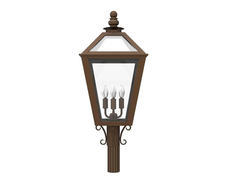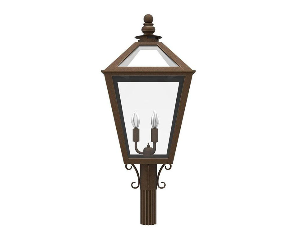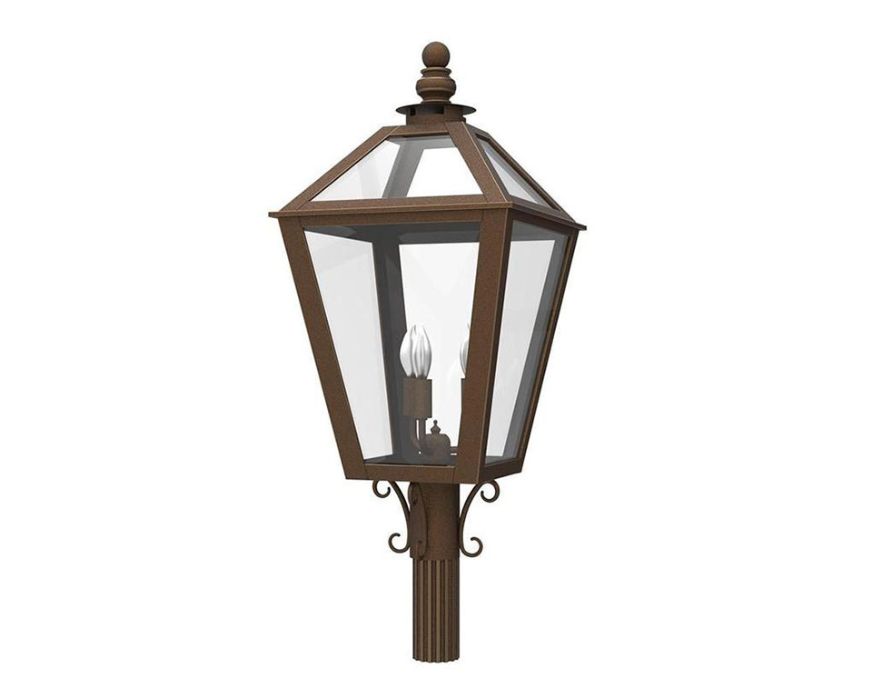 Reminiscent of the timeless London streetlights, our Bourbon lanterns convey a classic English elegance that is both distinct and understated. The lamps are 4-sided, with a scrolling bracket on some that adds elements of old-world charm and sophistication. This custom lighting family complements many architectural styles and is perfect for illuminating driveways, entryways, hallways, patios and gardens.