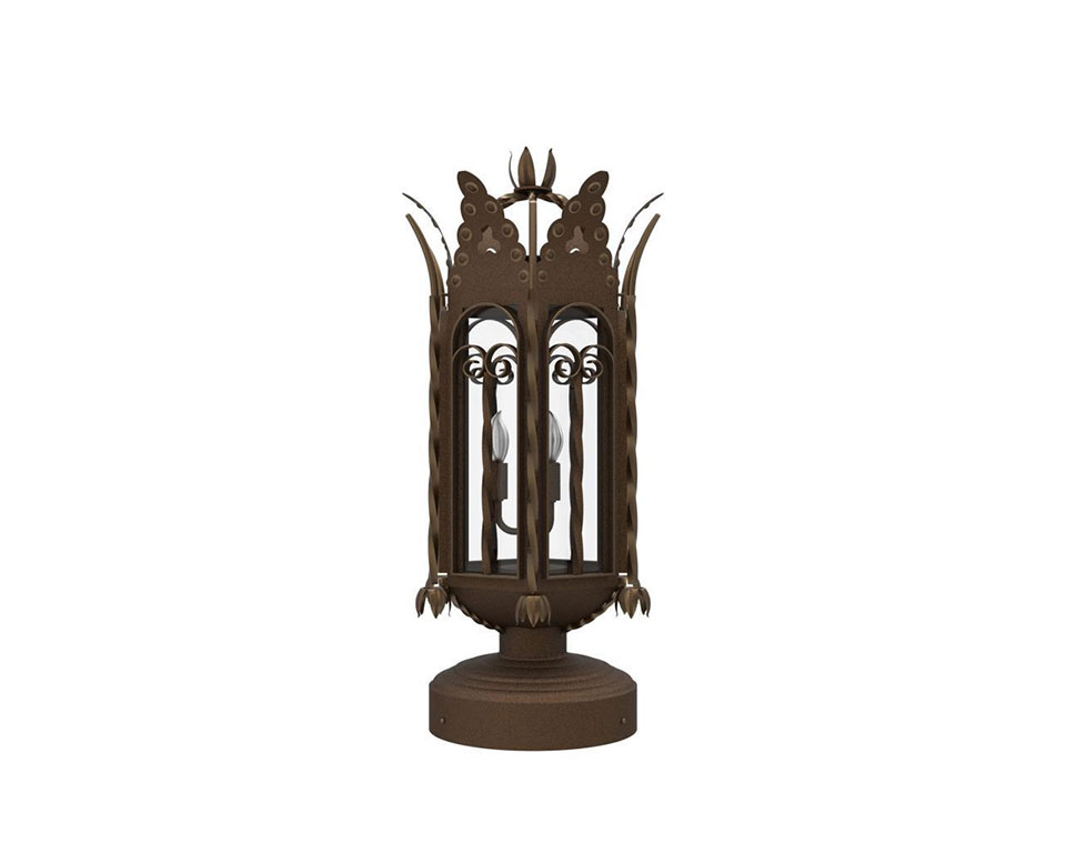 Named after a seaport in southwestern Spain, the Cadiz lantern leaves quite an impression. Arched ironwork, delicate leaves, braided pillars and intricate scrolls give this family its dramatic influence from Spanish Colonial architecture. This custom lighting concept shows well in European-style residential or commercial properties and illuminates any space with class, charm and character.