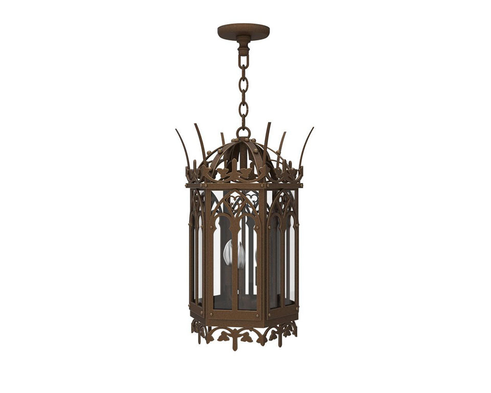 Reminiscent of the splendor of early Spain and Colonial Mexico, the word “capilla” translates in English to “chapel,” and that’s exactly what this ornate lantern resembles. With panes that mimic the windows of a church, the lamp is adorned top and bottom by a trefoil design with a cross as the finial. This custom lighting concept is a classic complement to European-style properties, making a dramatic statement at driveway entrances, front doors and other high-visibility areas.