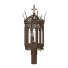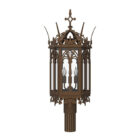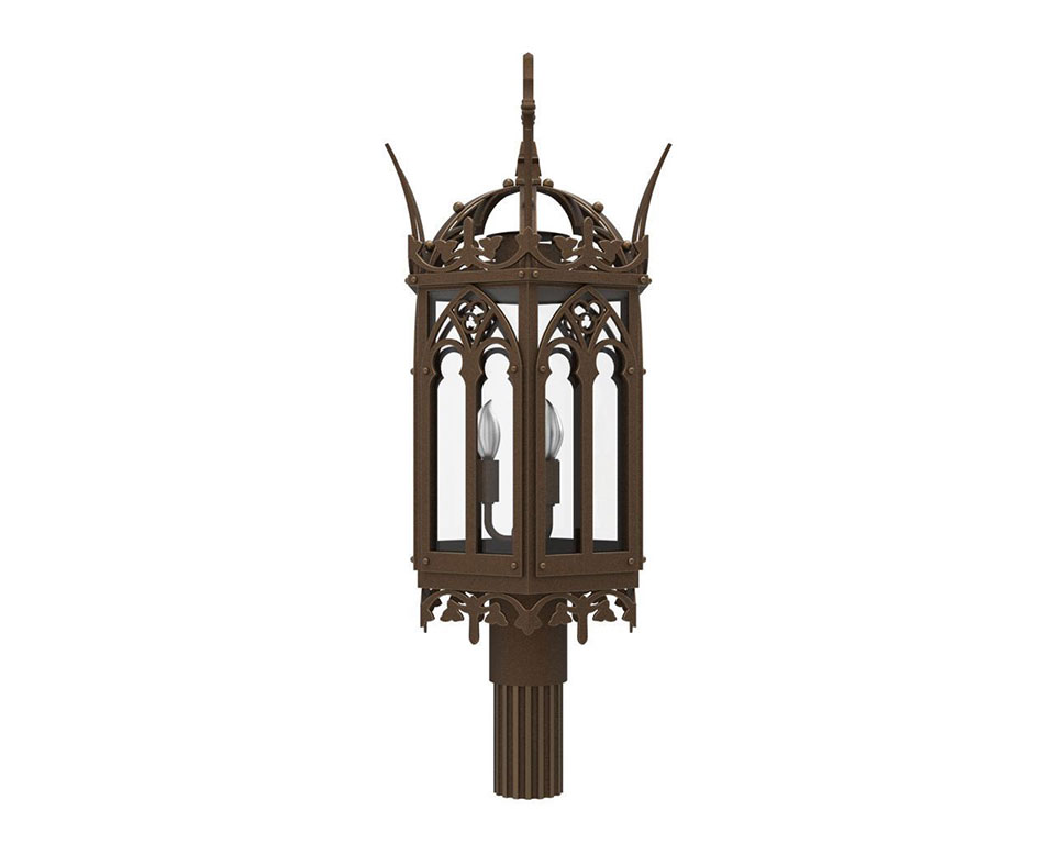 Reminiscent of the splendor of early Spain and Colonial Mexico, the word “capilla” translates in English to “chapel,” and that’s exactly what this ornate lantern resembles. With panes that mimic the windows of a church, the lamp is adorned top and bottom by a trefoil design with a cross as the finial. This custom lighting concept is a classic complement to European-style properties, making a dramatic statement at driveway entrances, front doors and other high-visibility areas.