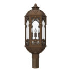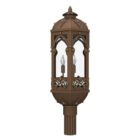 Modest and restrained in its ambiance, the Cistercian family offers an austere influence that resembles the churches, monasteries and abbeys of the Roman Catholic Cistercian Order. The six-sided, oblong custom light displays simple panes that mimic church windows, with a delicate laurel adorning the bottom. It is also bejeweled throughout with simple embellishments and encased on top and bottom by cathedral-shaped domes. This makes it ideal for illuminating driveway entrances, front doors and patios with old-world charm and allure.