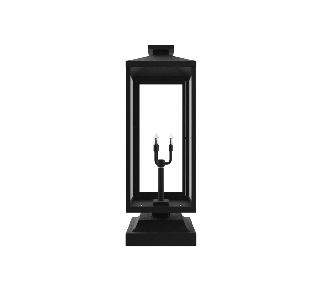 One of our most simplistic lanterns, this custom lighting family gracefully frames a luminescent flame or bulb with unobstructed panes and clean lines. This lantern is well-suited for the most recent low-profile trend, as well as any modern/transitional property, with its minimalist design and understated elegance. It displays well and driveways, entryways and patios with a simple sophistication.