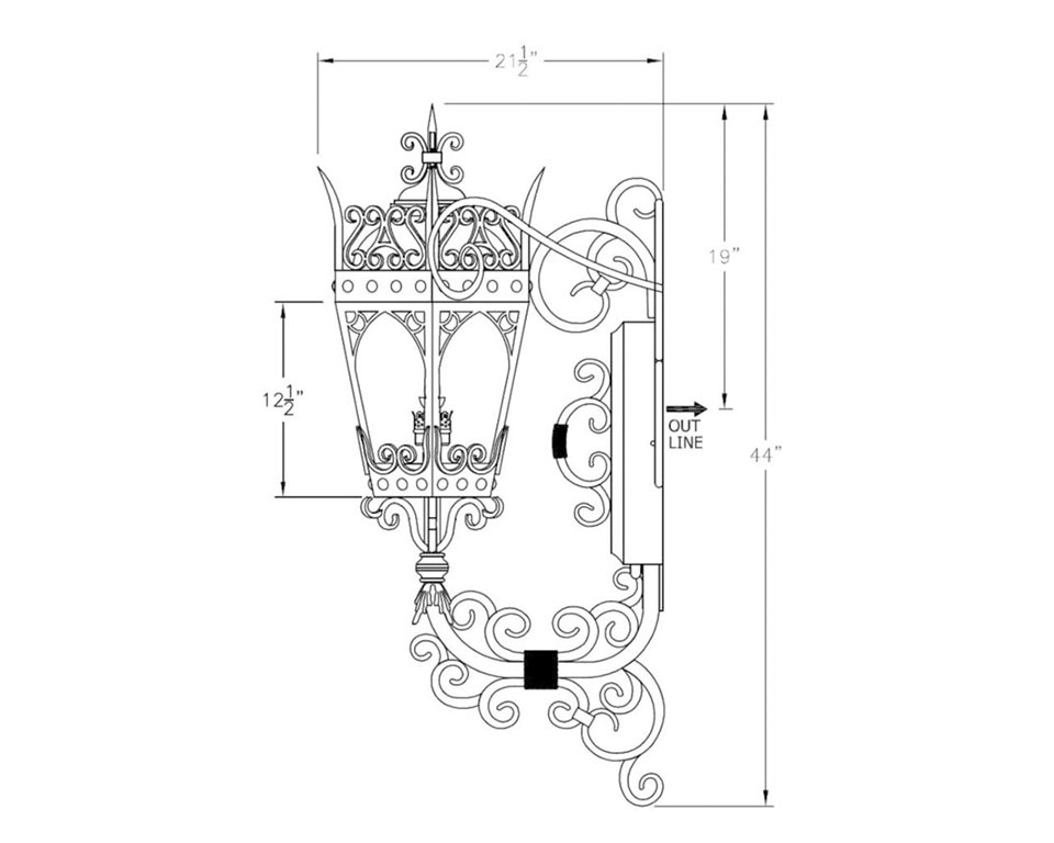 Undeniably elaborate in ornamentation and ambiance, the Dresden custom lighting family is a nostalgic nod to the 18th-century influence of Dresden, Germany. With its magnificent cathedrals and majestic castles, this design concept reflects the regal grandeur of Dresden in a time period filled with old-world charm. Prolific with scroll, spikes, buttons, leaves and bejeweled with character, this lantern will illuminate any space with elegance and impression.