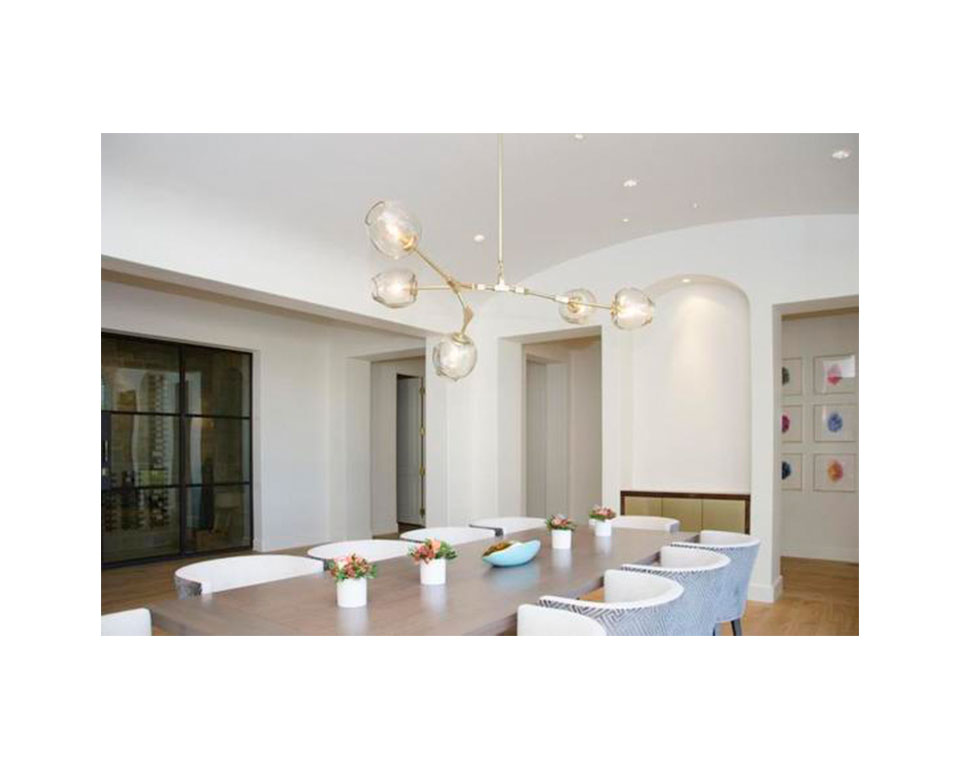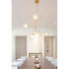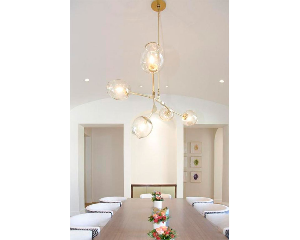 Like a bit of Greek Temple artifact found at the Aegean Sea and elevated to art, the Electra brass chandelier draws on the trend toward organic and nature-inspired decor. The sculptural fixture has five lights along its adjustable branches. Each light is covered with a simple clear glass globe. This contemporary design complements a traditional or modern residential or commercial space, in a lobby, foyer, kitchen, living room, dining room, or bedroom, and more.