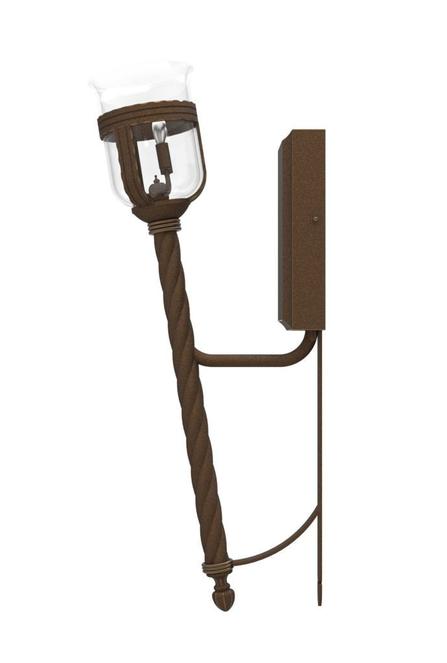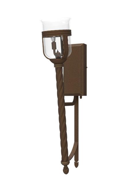 Reminiscent of island time, the Hilo custom lighting family derived its influence from the largest community of the island of Hawaii. The industrial-style construction is simple, yet distinctive, with a three-support iron basket that elegantly embraces a torch-style glass shade. This lantern is ideal for both traditional and transitional properties and homes.