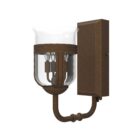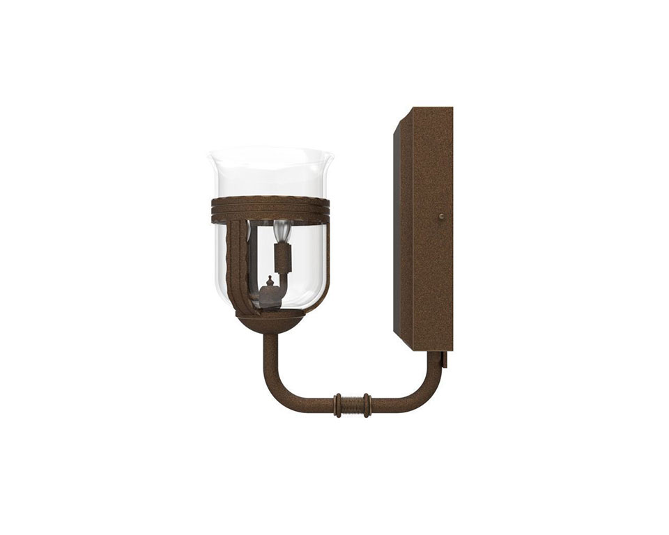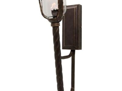 Reminiscent of island time, the Hilo custom lighting family derived its influence from the largest community of the island of Hawaii. The industrial-style construction is simple, yet distinctive, with a three-support iron basket that elegantly embraces a torch-style glass shade. This lantern is ideal for both traditional and transitional properties and homes.
