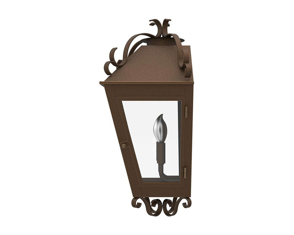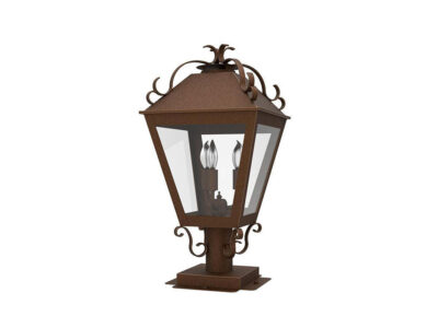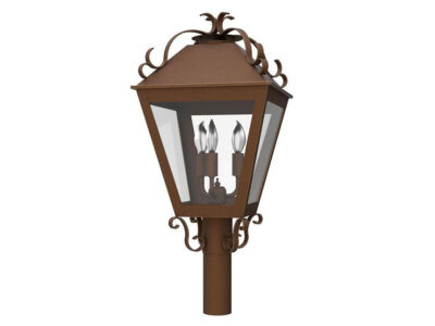 A nod to the classic London street light with a flare of French charm, the Jardin custom lighting family is simple beauty by day and frictionless function by night. Ornate scroll on the top and bottom of the lantern adds to the refinement of the lamp, with an understated elegance that illuminates nicely in both traditional and modern/transitional properties.