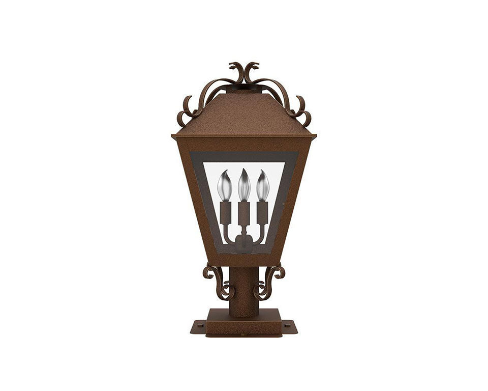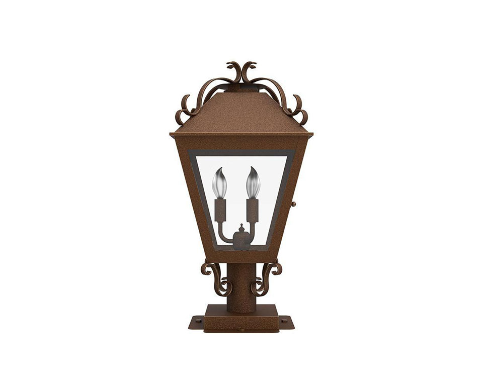 A nod to the classic London street light with a flare of French charm, the Jardin custom lighting family is simple beauty by day and frictionless function by night. Ornate scroll on the top and bottom of the lantern adds to the refinement of the lamp, with an understated elegance that illuminates nicely in both traditional and modern/transitional properties.
