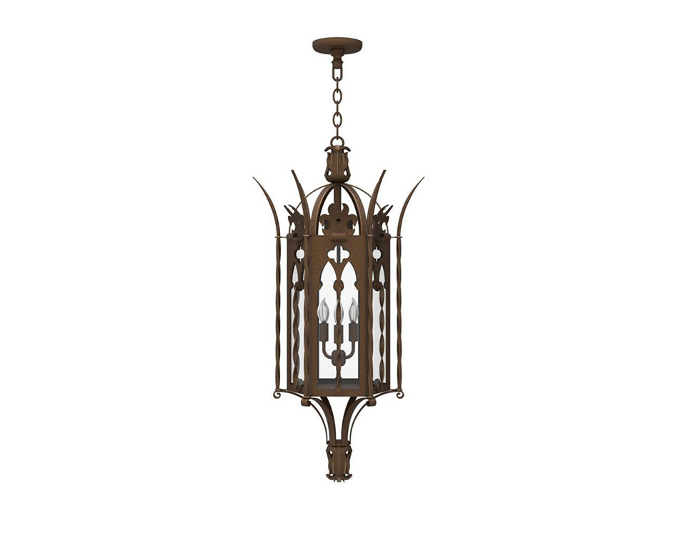 Similar in composition to our Capilla family, our Malaga custom lighting family is named after a provincial capital in Spain and brings with it the influence of old-world Spanish architecture. Showcasing a crown-like finial (which can be ordered in a contrasting finish), spikes, braids and cross-shaped silhouettes, this lantern is classic in its beauty and regal in its allure. It complements European-style buildings, making a dramatic statement at driveway entrances, front doors and other outdoor areas.
