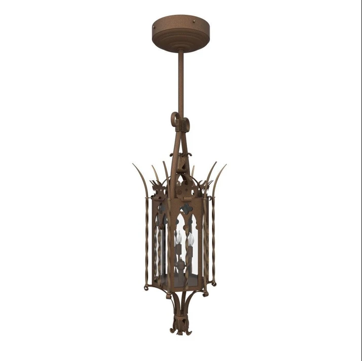 Similar in composition to our Capilla family, our Malaga custom lighting family is named after a provincial capital in Spain and brings with it the influence of old-world Spanish architecture. Showcasing a crown-like finial (which can be ordered in a contrasting finish), spikes, braids and cross-shaped silhouettes, this lantern is classic in its beauty and regal in its allure. It complements European-style buildings, making a dramatic statement at driveway entrances, front doors and other outdoor areas.