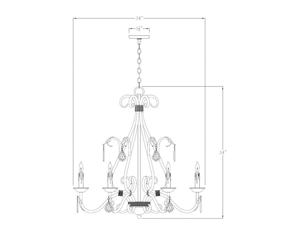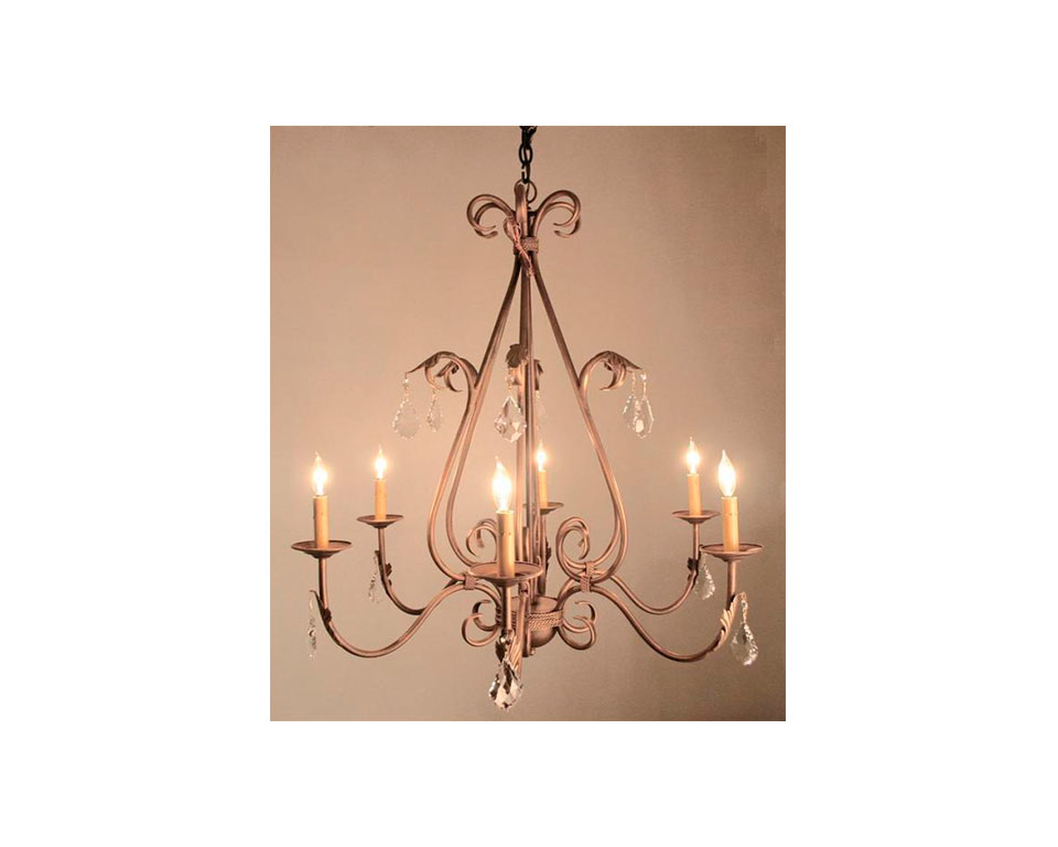 The Medussa iron chandelier is a classic wrought-iron design. Comprised of sweeping ironwork, leaf embellishments, and scrolling arms ending with candelabras, it looks beautiful with or without crystals. It can also be used with or without light shades. The time-honored indoor lighting tradition is ideal for a breakfast nook, kitchen, or bedroom. It’s understated elegance in a living room, dining room, or other area.