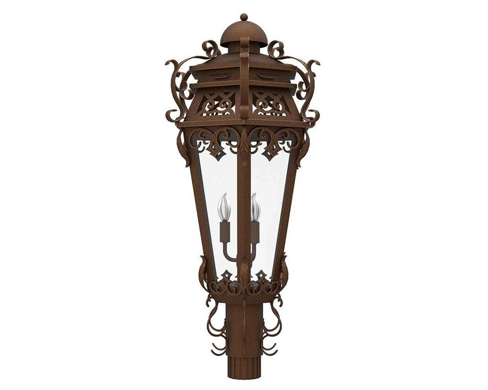 Named after the Grecian home of the Gods, the Olympia custom lighting family is regal in ambiance and elaborate in design. Cascading iron scrolls adorn the lamp, with even more embellished scroll supporting the lantern aloft in some mounting options. And the intricate diamond motif found throughout the custom mountings continues the theme of majesty and grandeur. Perfect for any property looking to cultivate an old-world charm, this classic design will illuminate any space with elegance and impression.
