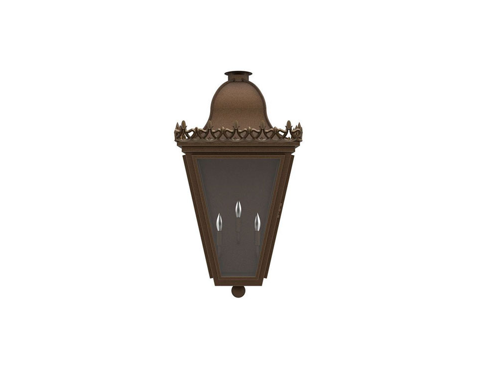 A lantern themed after the vast array of lighting design concepts appearing in Opryland hotels, including the famed Gaylord Texan Resort & Convention Center in Grapevine, Texas, the Opryland custom lighting family is a commission for that project now available to everyone. The whimsical lantern, with a trefoil motif around the cap, complements a traditional or transitional property and illuminates beautifully with a classic elegance.