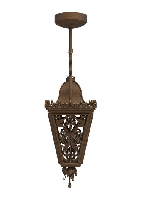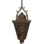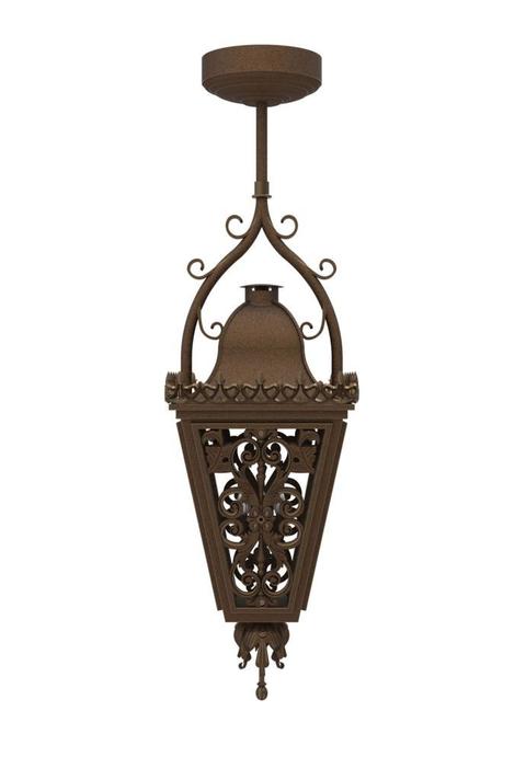 A lantern themed after the vast array of lighting design concepts appearing in Opryland hotels, including the famed Gaylord Texan Resort & Convention Center in Grapevine, Texas, the Opryland II custom lighting family is a commission for that project now available to everyone. The whimsical lantern differs from its predecessor (Opryland) in that its glass panes are overlaid with ironwork featuring a floral motif and it displays a floral bottom finial.