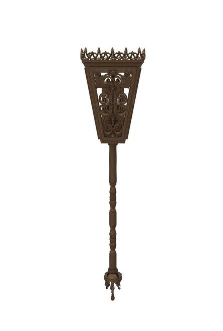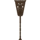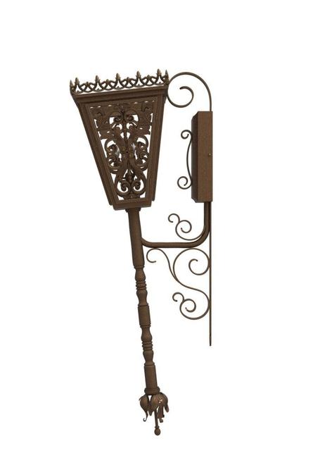 A lantern themed after the vast array of lighting design concepts appearing in Opryland hotels, including the famed Gaylord Texan Resort & Convention Center in Grapevine, Texas, the Opryland II custom lighting family is a commission for that project now available to everyone. The whimsical lantern differs from its predecessor (Opryland) in that its glass panes are overlaid with ironwork featuring a floral motif and it displays a floral bottom finial.