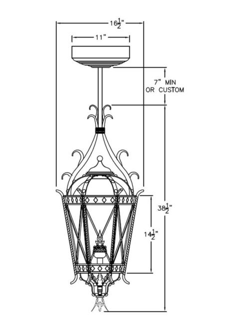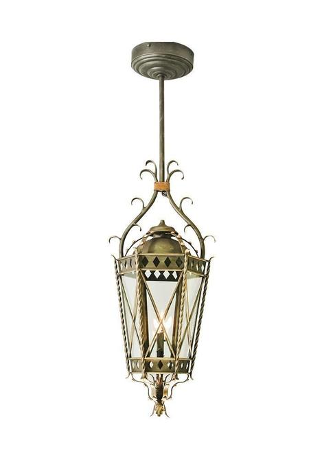 The Praha custom lighting family is designed for impression. This classic lantern features a diamond-shape motif around the top and bottom, twisted supports on the panes, buttons adorning the caps and understated scroll (on some mountings). A small knob finial tops off the custom design, with four leaves enveloping the very bottom of the lamp. At a driveway or doorway, or on a patio or deck, this lantern complements traditional and transitional architecture alike.