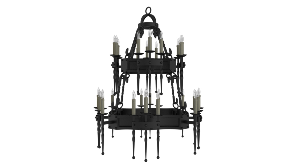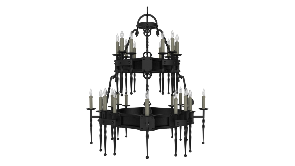 Fashioned after a wine barrel chandelier, The Central Park iron chandelier comprises one or more graduated tiers of pillar lights, each gracefully extended from a circular frame. Sweeping iron rods form the top of the fixture; an open dome forms the bottom. With a classical tone but simple lines this wrought-iron chandelier complements both traditional and transitional architecture. It is a beauty in a foyer, kitchen, living room, dining room, bedroom, game room, and more.