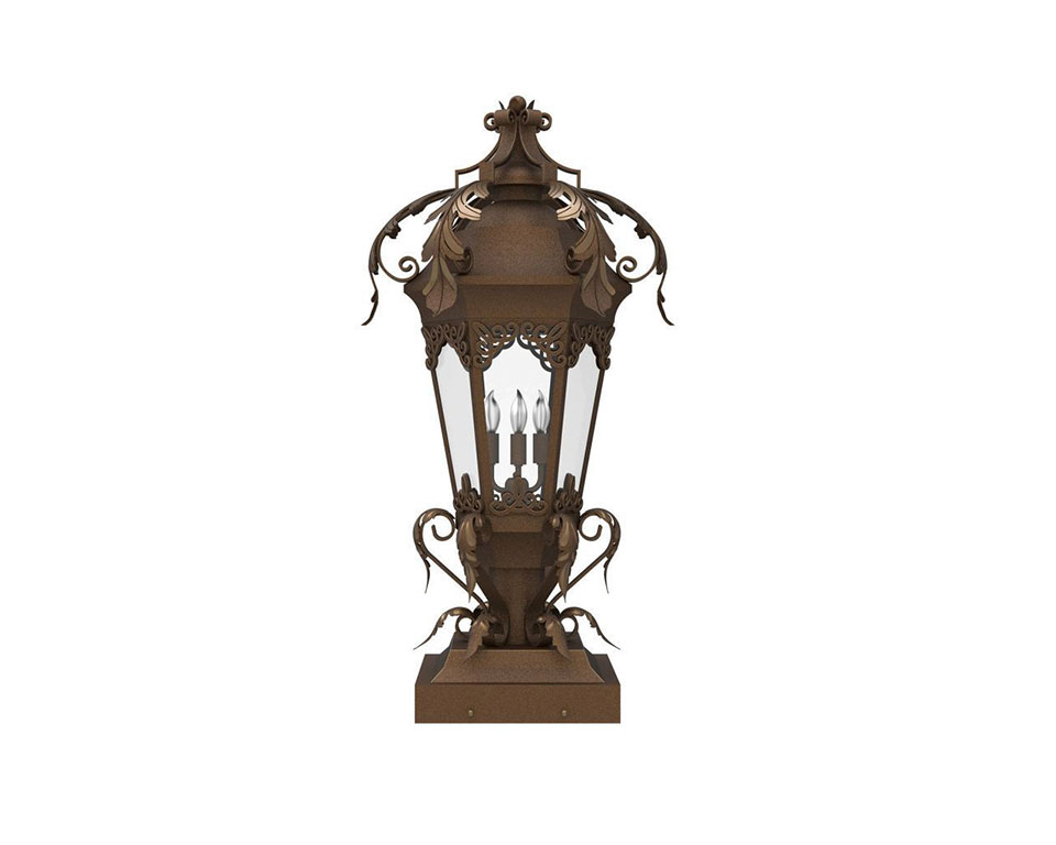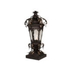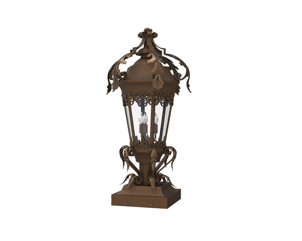 Reminiscent of a stunningly beautiful city in Mexico’s central highlands, our San Miguel custom lighting family reflects the natural elegance of that city with an abundance of organic detail. Rings of leaves cradle the six-sided lantern top and bottom, with delicate scrollwork layered over the glass for a feminine allure. This beautiful lamp is well-suited for both traditional and transitional architectural styles and is a striking addition to a driveway entrance, doorway, patio, balcony and more.