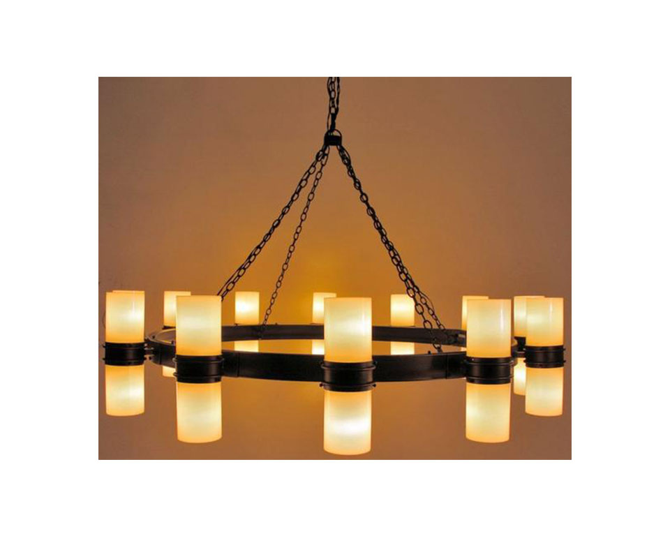 Available as a round or rectangular light, the Sanctuary iron chandelier is modern-rustic design suited for most any area of a home, hotel, spa, and more. The fixture incorporates pillar-style candelabra around the perimeter of a simple iron frame; chain-link suspends the chandelier from the ceiling. This indoor light looks beautiful in a foyer, over a dining room table, above a bed, in a game room, in the living room, and more.