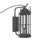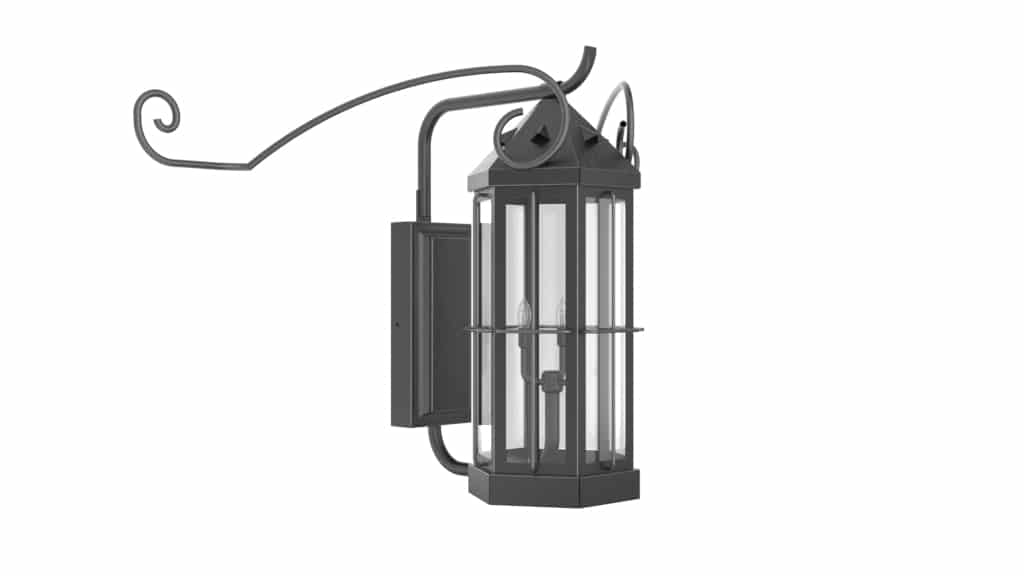 Simple, yet intriguing, the Sosha custom lighting family features a geometric influence to its transitional design. Four glass panels with geometric overlays give the look of traditional four-split windowpanes, for a total of 16 individualized panes throughout the entire lantern. A basic pyramid-shaped topper with simple peephole embellishments finishes off the light for a unique illumination. Ideal for driveways, entryways and patios, this lantern offers simple sophistication to any transitional property.