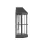 Simple, yet intriguing, the Sosha custom lighting family features a geometric influence to its transitional design. Four glass panels with geometric overlays give the look of traditional four-split windowpanes, for a total of 16 individualized panes throughout the entire lantern. A basic pyramid-shaped topper with simple peephole embellishments finishes off the light for a unique illumination. Ideal for driveways, entryways and patios, this lantern offers simple sophistication to any transitional property.