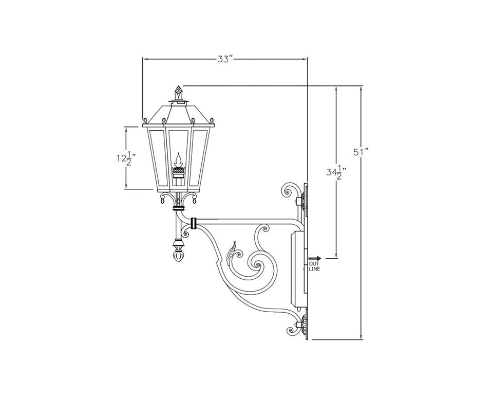 Similar in composition to the Sebastian lantern family with its nod to the traditional London street lamps, the Sicilia has a more restrained design but the same classic ambiance. A single bracket holds the custom light aloft (in applicable mountings), with gentle scrolls offering a touch of organic detail to support the bracket. The bodice and cap are simple, yet strong, with an acorn finial to top off the lamp. This style works well with both traditional and transitional architecture and is ideal to place on either side of a driveway or doorway, or on a patio or deck for an elegant statement.