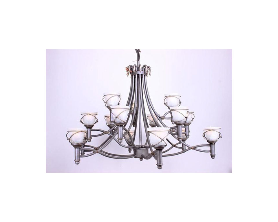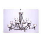 The Tahoe iron chandelier is a contemporary take on a fountain chandelier. The design features a sweeping neck that tapers to a crown of hooks and upward-facing light cups caged in iron. The light is a modern, masculine statement piece for a transitional space. The fixture makes has definite presencein a foyer, dining room, living room, kitchen, bedroom, game room, and more.