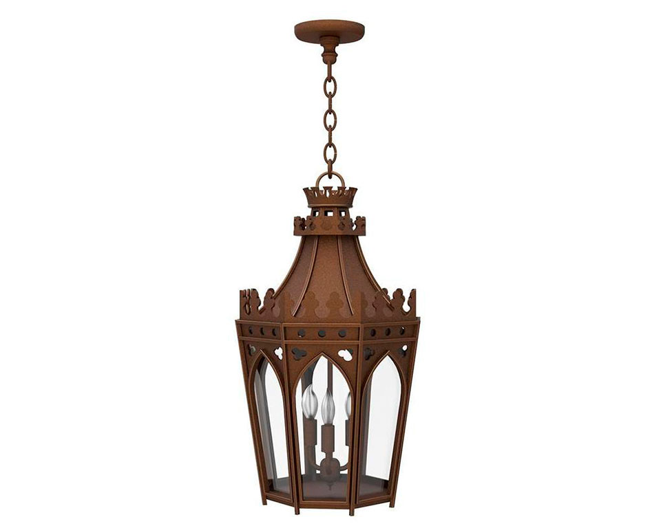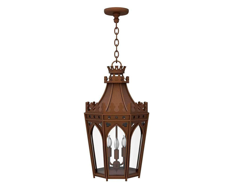 The Moroccan influence is clear in our Tangier custom lighting family with its tapered octagonal lantern, ringed by two tiers of spades, and topped with a crown. A cluster of scrolls adorns the bottom bracket (in applicable mountings), with a single-scroll top bracket creates balance. A touch of whimsy and class, this style suits both classical and transitional residential and commercial buildings. It’s an elegant statement on either side of a driveway or doorway, or on a patio or deck.