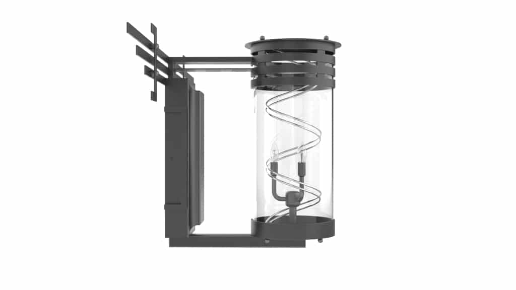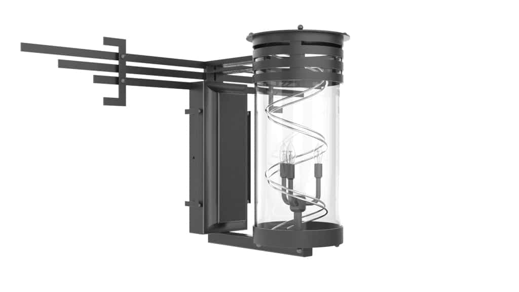 A modern electric light design comprising a glass cylinder and housing three bulbs wrapped in a spiral, the Translucent custom lighting family offers classic styling with eclectic flare. A trio of bands at the top of the lantern is the only embellishment in an otherwise clean composition. This state-of-the-art light is ideal for both transitional and modern architectural styles, flanking a driveway or doorway, or on a patio or pool deck.