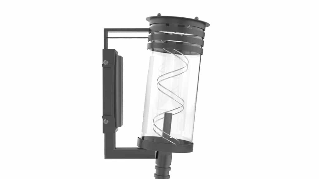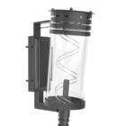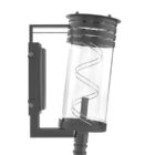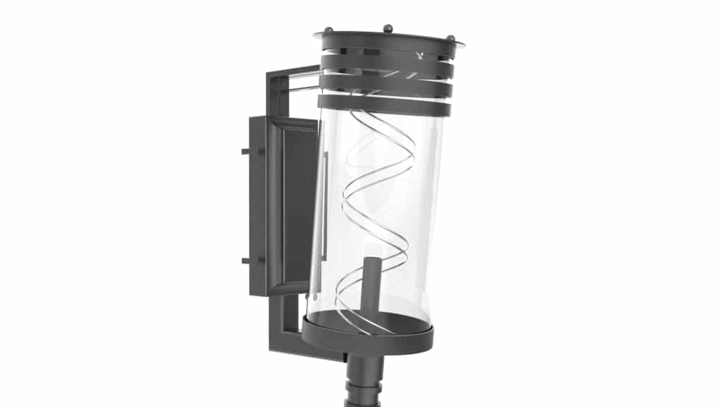 A modern electric light design comprising a glass cylinder and housing three bulbs wrapped in a spiral, the Translucent custom lighting family offers classic styling with eclectic flare. A trio of bands at the top of the lantern is the only embellishment in an otherwise clean composition. This state-of-the-art light is ideal for both transitional and modern architectural styles, flanking a driveway or doorway, or on a patio or pool deck.