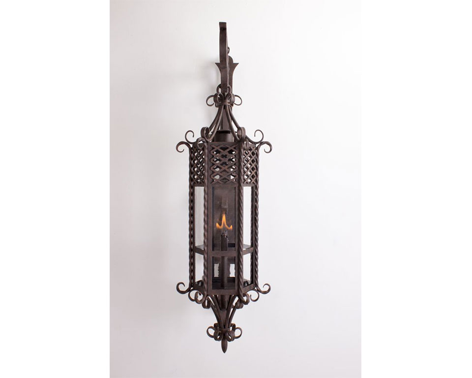 The Trellis custom lighting family combines order, nature and fire with a clean rustic feel for an observer to enjoy. Modest scroll frames the top and the bottom of the light, with a diamondesque-patterned overlay that gives the lantern a more ornate feel and adds a bit of classic charm. It illuminates beautifully in classic architectural design concepts, flanking a driveway or doorway, or on a patio or pool deck.