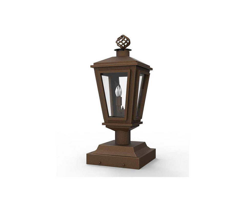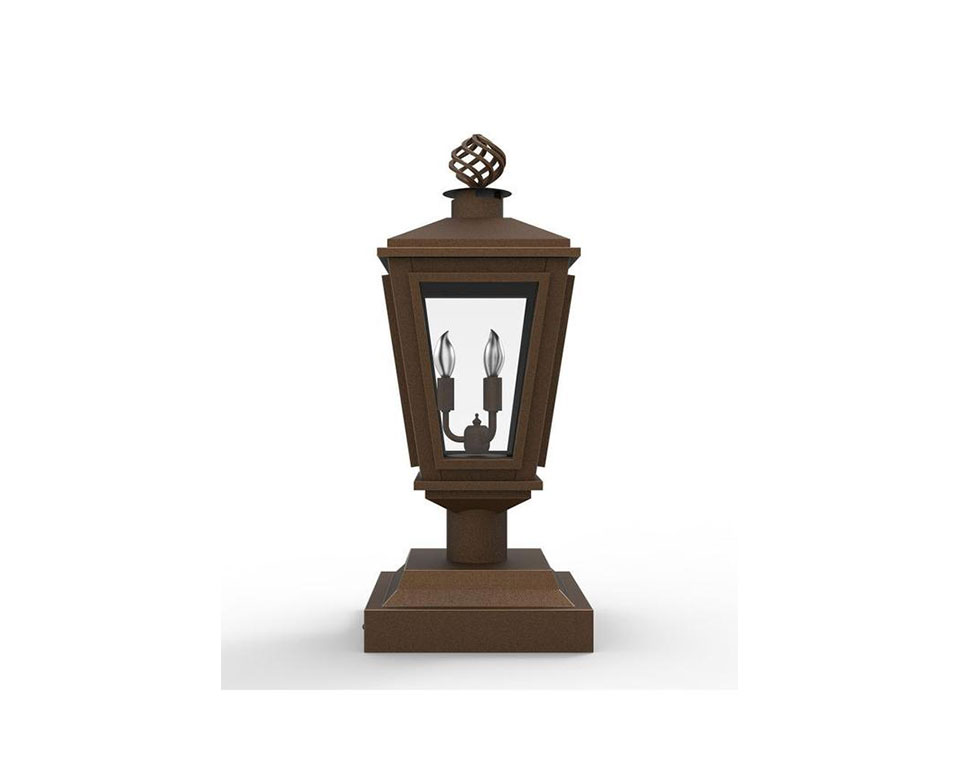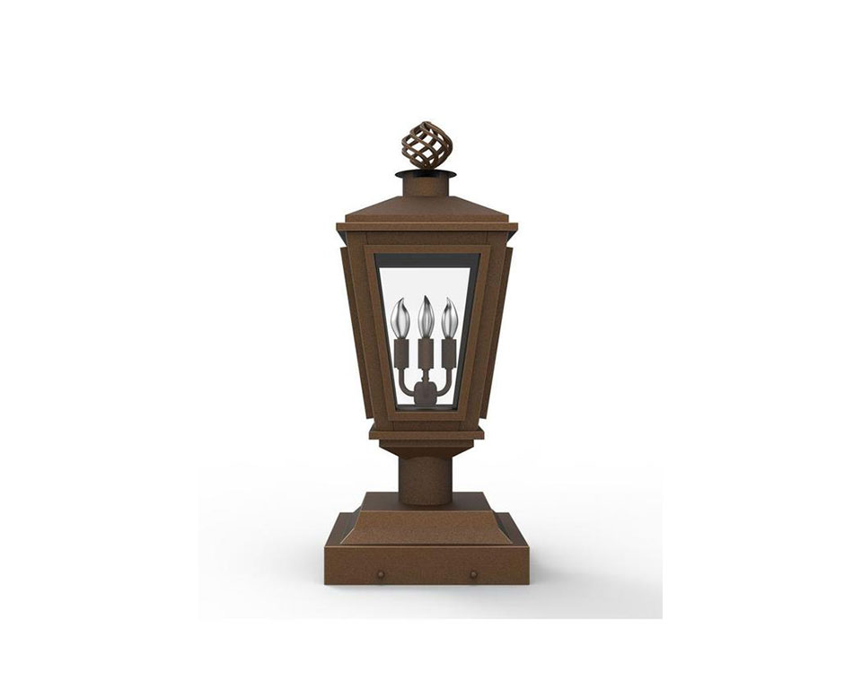 Though the architecture from this Italian city is known for some of the more ornate in the world, Solara’s Venice custom lighting family is remarkably restrained. The scroll mountings reach skyward before cascading down to suspend a classic street light-style lantern with understated lines, topped off with a hollow swirling ball. This design exemplifies today’s transitional style and is stately at the sides of a driveway or doorway, or on a patio, deck or other outdoor area.