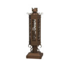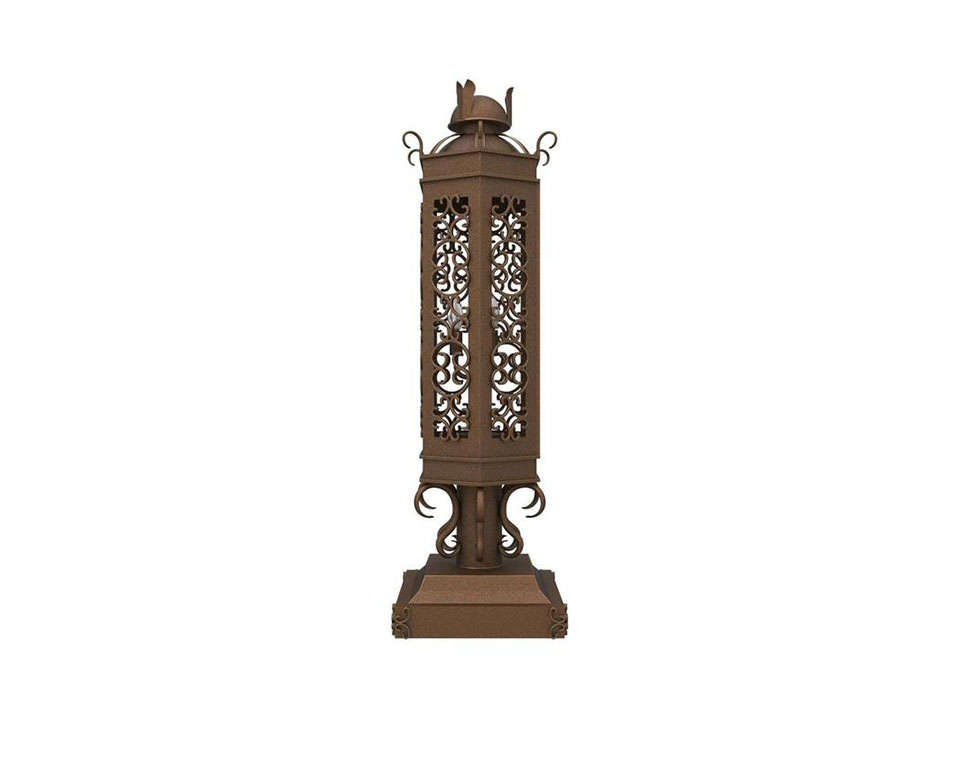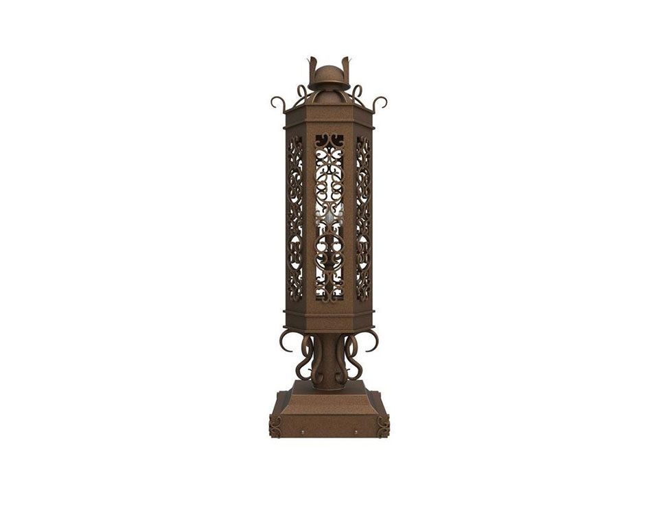 Whether it illuminates a driveway, front entryway or balcony door, the Victory custom lighting family stands tall and proud. From the bottom of the wall plate to the top of the lantern, this light quite literally reaches great heights. The panes of the hexagonal lantern are covered in scrollwork, with some mountings adorning brackets that have bountiful leafy ornamentation. It is a true statement piece that complements traditional or transitional homes and commercial buildings.