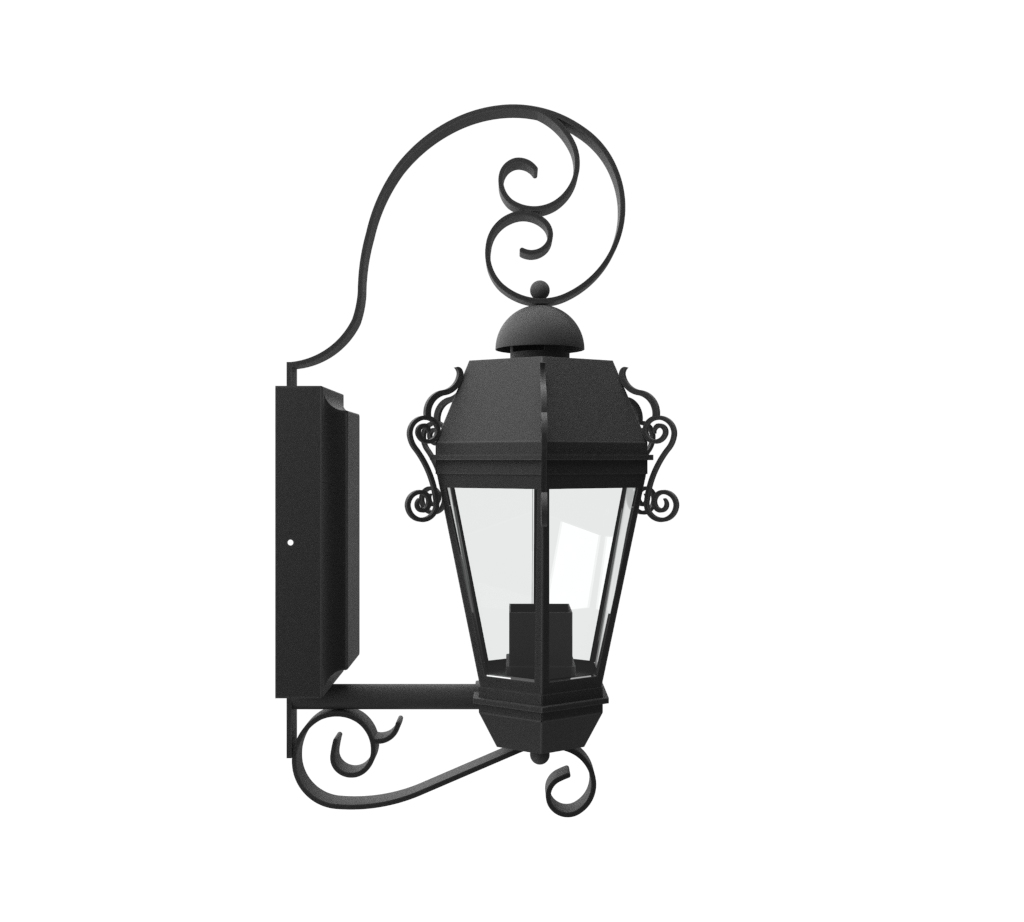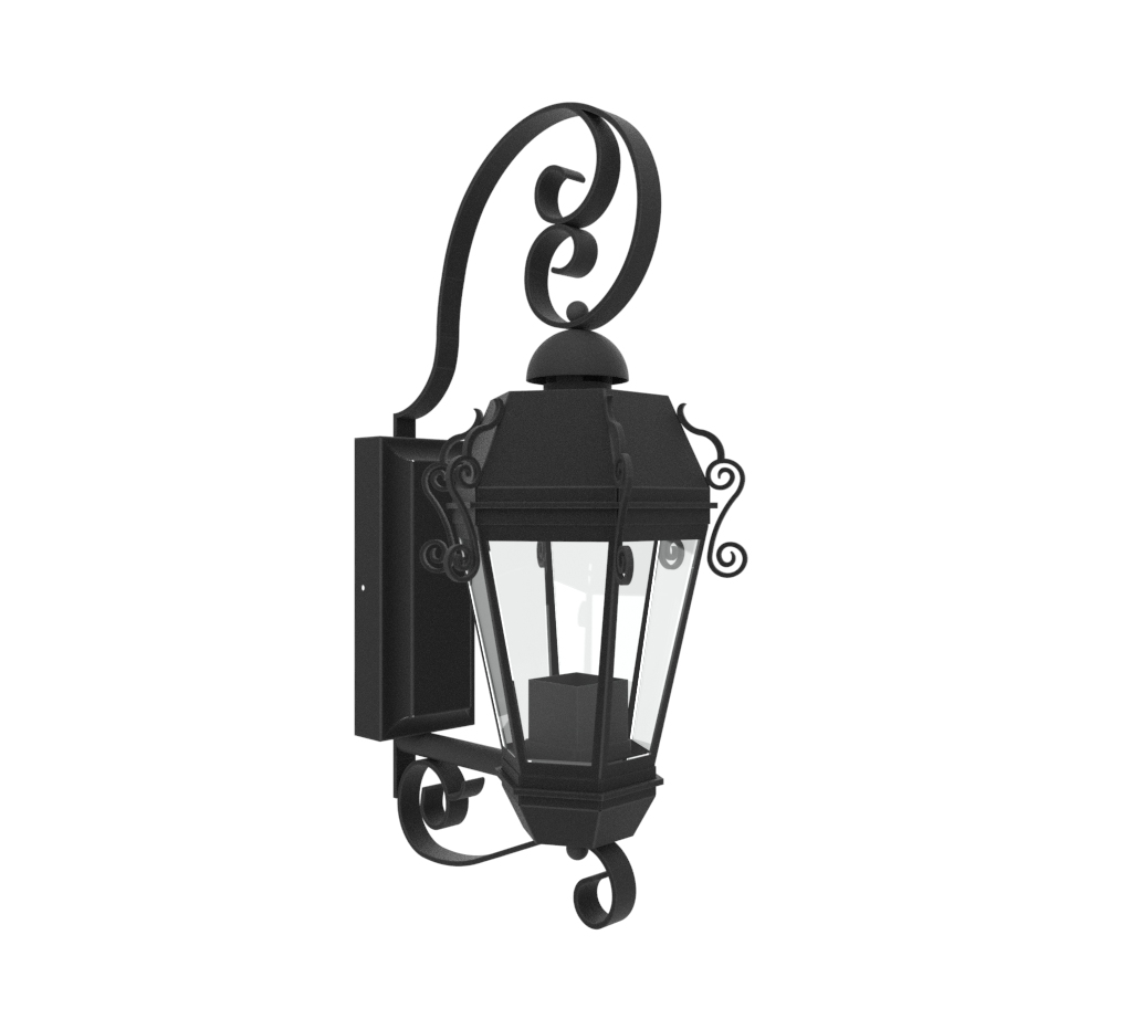 Named after Austria’s capital, the Vienna custom lighting family strikes a harmonious balance between the traditional and transitional design concepts in a beautiful way. The classic tapered-hexagon shape is lightly embellished with flattened scrollwork and topped with a domed finial, with brackets (in some mountings) that feature simple flattened scrolls. The light complements transitional properties and is suited for many outdoor uses, flanking driveways and doorways, as well as indoor use if desired.