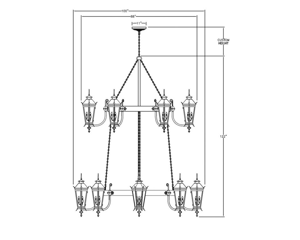 Our gas and electric chandelier are made from wrought iron and/or strengthen gauge steel. Each fixture undergoes an electrostatic process to increase durability of the lantern and finish. Designs vary in mounting options, sizes, energy type (electric or gas lighting), heads, and ignition starters (manual or electronic ignition). All fixtures are UL approved for natural gas or propane gas, and indoor or outdoor use. If you wish, we are able to manufacture custom lights with simple changes to our existing standard fixtures or fully customized designs to fit your needs.
