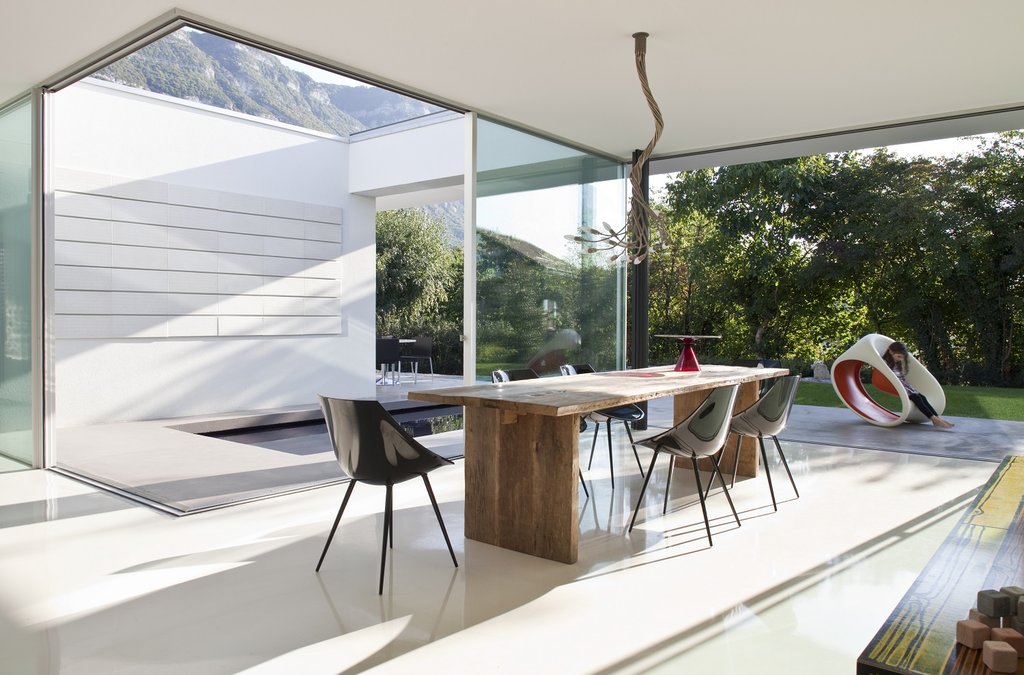Unlike traditional casement systems, PanoramAH! glass is self-supporting, with casements embedded in construction elements such as walls, floors and ceilings. An aluminum frame takes on the secondary functions of guiding the sliding motion, providing additional structural reinforcement and ensuring the window’s sealing capacity.